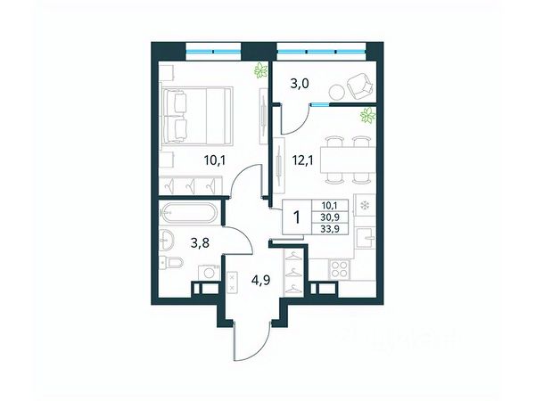 • ✅ Минимальная площадь: 33,9 м²