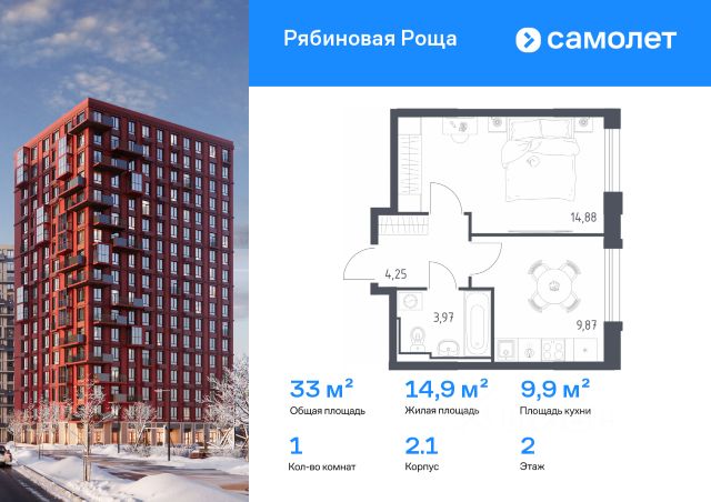 Строим кварталы для жизни с заботой о будущем. Предлагается 1-комнатная квартира комфорт-класса 33,27 кв.м в корпусе 1.1 на 16 этаже, в ЖК "Рябиновая Роща" Квартира без отделки. Доступность опции "отделка" и возможность комплектации мебелью и декором уточняйте у застройщика. Приобрести квартиру возможно по специальным акциям от застройщика, с текущими условиями акций можно ознакомиться в блоке "Акций". Цена динамическая и может отличаться, уточняйте актуальность у застройщика. В "Рябиновой Роще" жители смогут наслаждаться прогулками по благоустроенной набережной и рябиновой роще под пение птиц. До центра Читы — всего 13 минут на машине. В квартале будет 2 детских сада на 300 и 305 мест и школа на 1100 мест. На первых этажах откроются магазины, кафе и салоны красоты. Совсем рядом появится благоустроенная набережная длиной 17 км для прогулок и утренних пробежек. "Рябиновая Роща" — это комплекс с домами высотой от 9 до 17 этажей, оформленными в стиле "речных фасадов". Жители смогут заниматься спортом на свежем воздухе, загорать в городском солярии или читать в рябиновой роще. Для детей — современные игровые площадки. Для автомобилистов предусмотрены 4 многоуровневых паркинга. Входы в лобби находятся на уровне земли, внутри есть места для хранения колясок и велосипедов. Квартиры с увеличенными окнами, гардеробной и кухней-гостиной для реализации интерьерных идей.