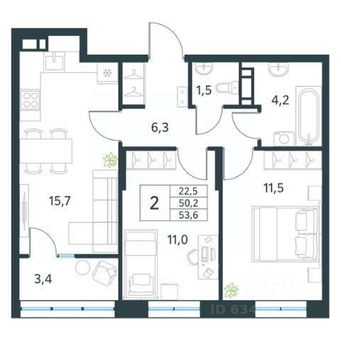 • ✅ Минимальная площадь: 34,2 м²
