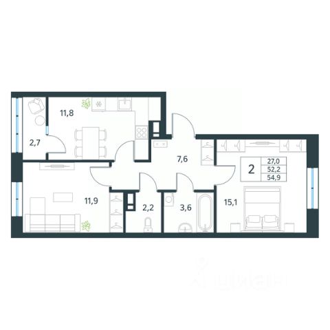 Квартиры без отделки. Доступность опции "отделка" и возможность комплектации мебелью и декором уточняйте у застройщика.