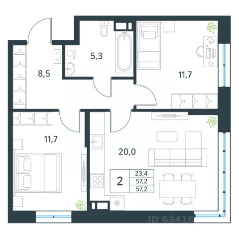 • ✓ В базе объявлений Циан 1,1 тыс. 2-комнатных квартир в Забайкальском крае.