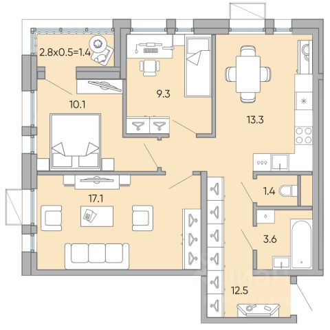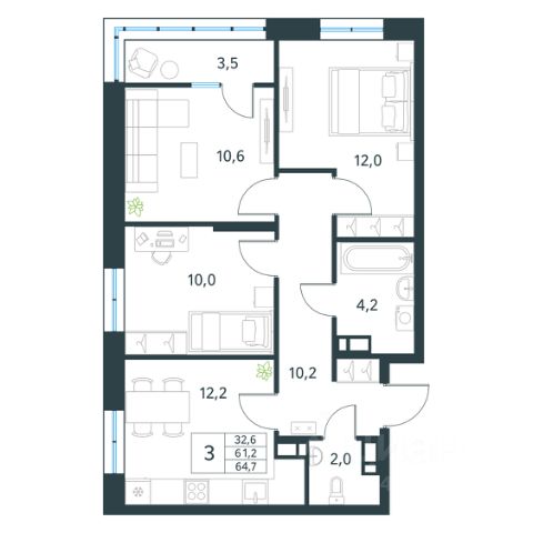 Продается 3-комн. квартира площадью 69,4 кв.м, без отделки. Квартира расположена на 14 этаже 18 этажного монолитного дома (Литер 1, Секция 1) в ЖК "Хороший" от АТОЛЛ. "Хороший" уютный микрорайон на берегу озера Кенон. Мы запланировали комплексную застройку: возводим дома средней этажности (от 9 до 18 этажей) и создаем собственную инфраструктуру. Первая очередь и детский сад уже сданы, а весь микрорайон будет полностью готов в 2030 году. К этому моменту здесь будет 35 современных жилых зданий, 3 парка, школа, детские сады, большой паркинг и многое другое. "Хороший" городской кластер для жизни современных успешных людей. Это больше, чем просто жилой комплекс - это образ жизни, ориентированный на успех.*