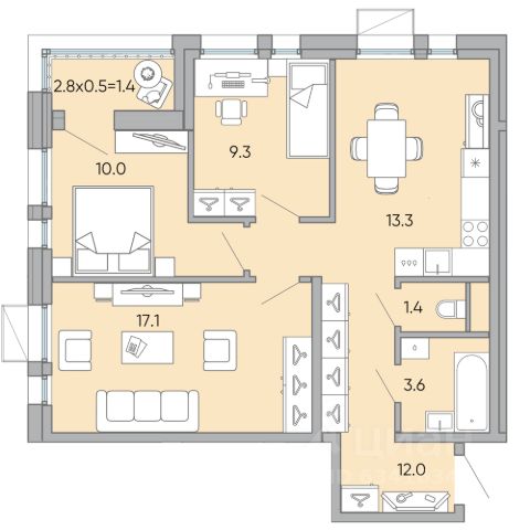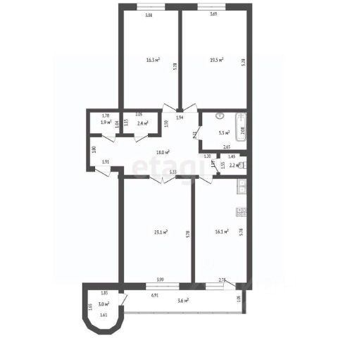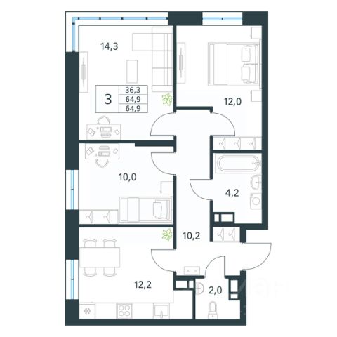 В продаже просторная 3х комнатная квapтира, общей площадью 69,1 кв м!