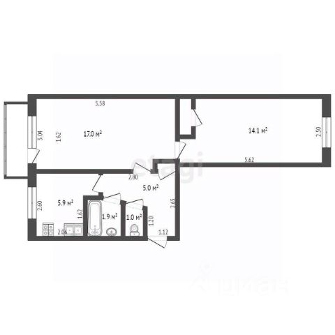Двухкомнатная квартира с просторной кухней, лоджией - идеальна как для жизни семьей, так и для себя самого!