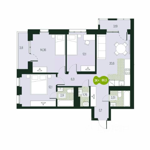 • ✅ Минимальная площадь: 28,6 м²