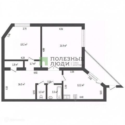 • ✅ Объект наибольшей площади: 57,3 м²