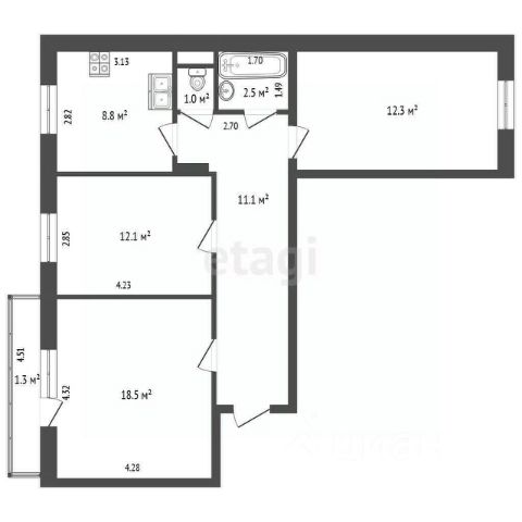 1 собственник. Возможно оформить квартиру в ипотеку по ставке от 12,99% годовых!