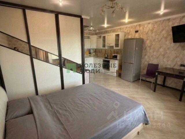 - Квартира состоит из двух комнат: жилая просторная, светлая, разделена на две зоны спальную, где прекрасно умещается кровать и шкаф платяной, а также зона отдыха с диваном, телевизором, туалетным столиком, все продумано до мелочей; а также кухня, площадью 12.7 кв.м. просторная, обустроена всей необходимой мебелью, проведена вода, имеется стиральная машина, а также раковина в кухонном гарнитуре. Общая площадь квартиры 29,8 кв.м. Балкона нет.