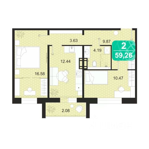 - Квартира солнечная, просторная, общая площадь 62,5 кв.м., без учета лоджии (7,2 кв. м.) Удобная планировка: изолированная жилая комната, площадью 14,5 кв.м., кухня-гостиная 27 кв.м. с выходом на лоджию 7,2 кв. м. с прекрасным видом на город в сторону ул. Бабушкина, просторный коридор 14,7 кв. м. с вместительным, зеркальным шкафом, ванная комната 4 кв. м., сан узел 4 кв. м.