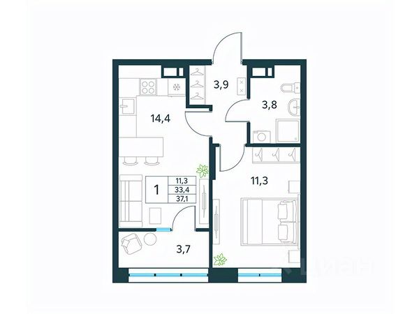 Продается 1-комн. квартира площадью 33,9 кв.м, без отделки. Квартира расположена на 13 этаже 18 этажного монолитного дома (Литер 1 (3 очередь), Секция 1) в ЖК "Хороший" от АТОЛЛ. "Хороший" уютный микрорайон на берегу озера Кенон. Мы запланировали комплексную застройку: возводим дома средней этажности (от 9 до 18 этажей) и создаем собственную инфраструктуру. Первая очередь и детский сад уже сданы, а весь микрорайон будет полностью готов в 2030 году. К этому моменту здесь будет 35 современных жилых зданий, 3 парка, школа, детские сады, большой паркинг и многое другое. "Хороший" городской кластер для жизни современных успешных людей. Это больше, чем просто жилой комплекс - это образ жизни, ориентированный на успех.
