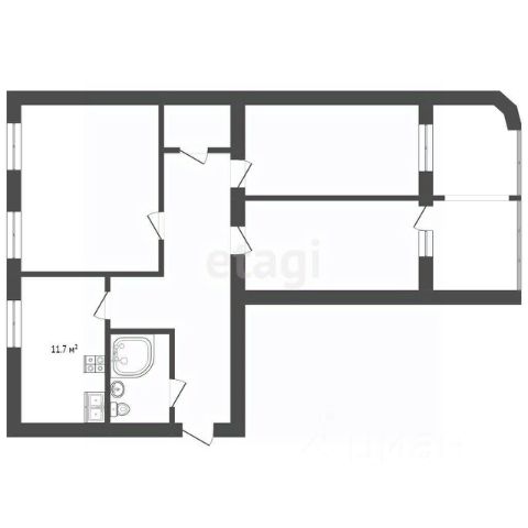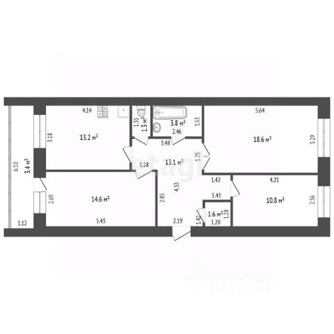 Кoличество жилых комнaт - 4 (14 кв.м, 12,4 кв.м, 15,2 кв.м, 18 кв.м).