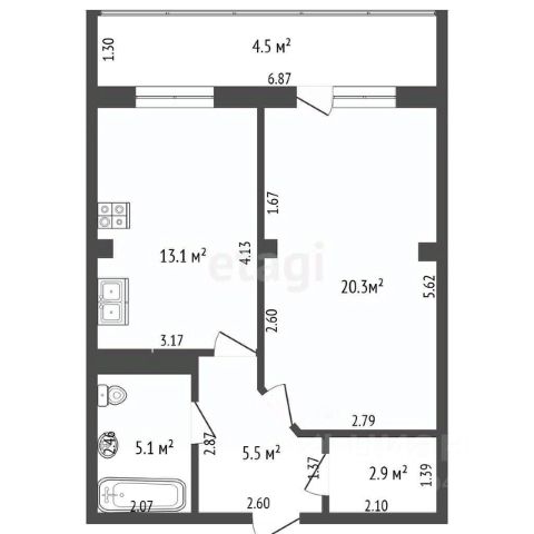 • ✅ Минимальная площадь: 45,1 м²