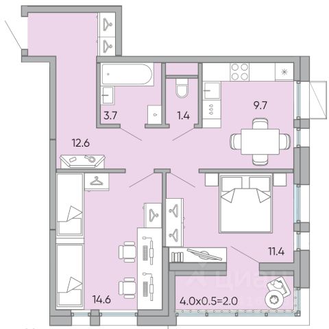 • ✅ Минимальная площадь: 26,6 м²