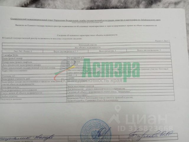 Внимание!!! Продажа отличного земельного участка, с шикарным видом на город! Описание: Продается отличный участок, расположенный в 15 мин от города, экологически чистом пригороде, куда никогда не приходит смог города. Всегда чистый воздух, много солнца и шикарные виды на яблоновый хребет и город. Участок находится по адресу: Чита, с. Застепь, р-н Птичник, в 20 км от города Чита. Чистый гравийный подъезд, ровные, грунтовые дороги по поселку. Участок ровный , без холмов и ям. Не подтопляемый, сухой. Отличным вариант для застройки и проживания или летнего отдыха. Доступность и инфраструктура: -Удаленность от города - всего 20 км -Чистый , Лесной массив в 15 мин неспеша; Дополнительная информация: Один собственник, без долгов и обременений. Заинтересовал объект - звоните в любое время, сохраните в избранное, чтобы не потерять объект, либо оставьте ваш номер для связи! Отвечу на любые вопросы в сообщениях! Покупая данный объект, вы получите в подарок полезные услуги: - Юридическое сопровождение с экспертизой - Рассмотрение ипотечного кредитования - скидки по ипотечному кредитованию от 0.7% - Скидки на последующие обращение - Подарки от партнёров - Купон на ежегодную лотерею Федеральный союз риэлторов "Полезные люди" Тимирязева 31. Арт. 102605559