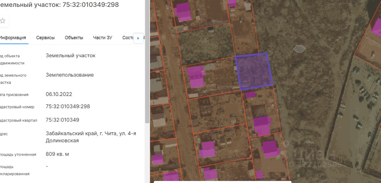площадь 809 кв.м., для индивидуального жилищного строительства, расположенный по адресу: Забайкальский края, г. Чита, ул. 4-я Долиновская