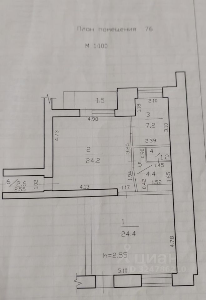 Торговая площадь: два зала - 24,4 м2 и 24,2 м2