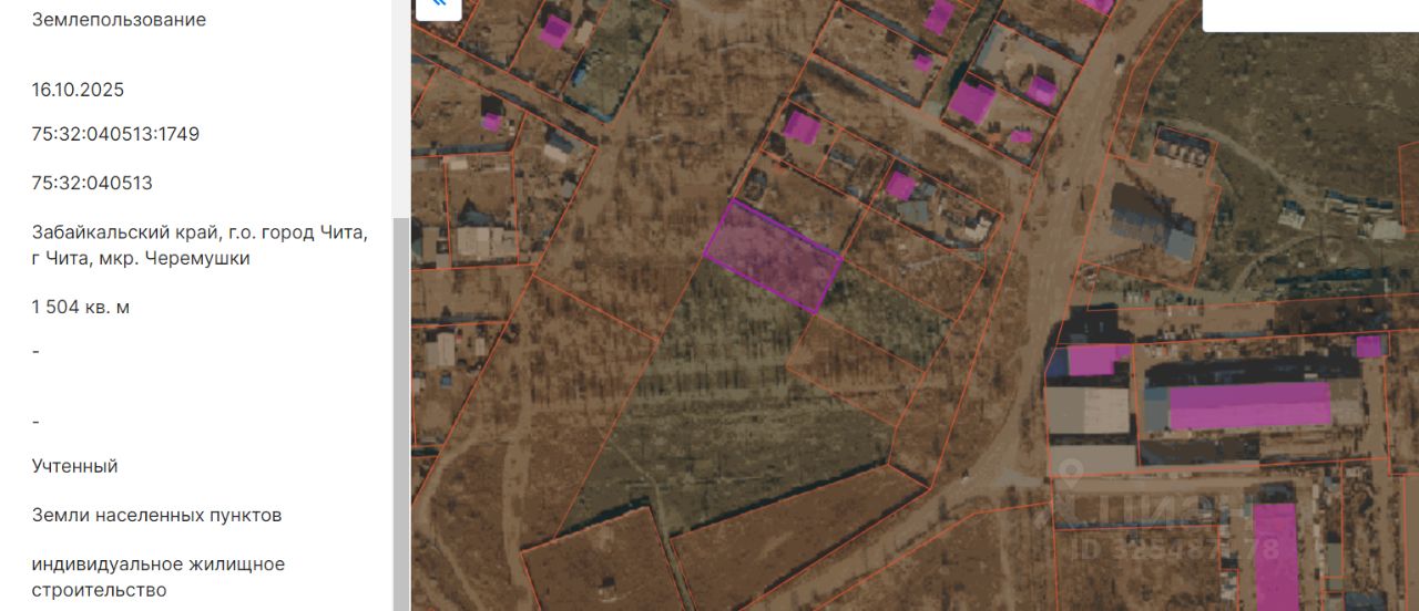 земельный участок с кадастровым номером 75:32:040513:1749, площадью 1504 кв.м.