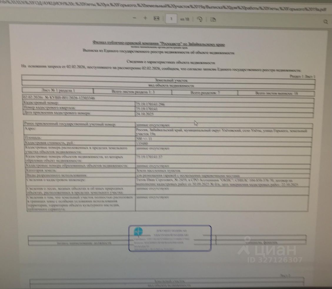 Земельный участок расположен на территории с. Улёты , Забайкальского края, государственная собственность на который не разграничена, с. Улёты,ул.Горького 19а