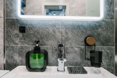 ванна, полотенца, жидкое мыло, гель для душа, шампунь, фен.