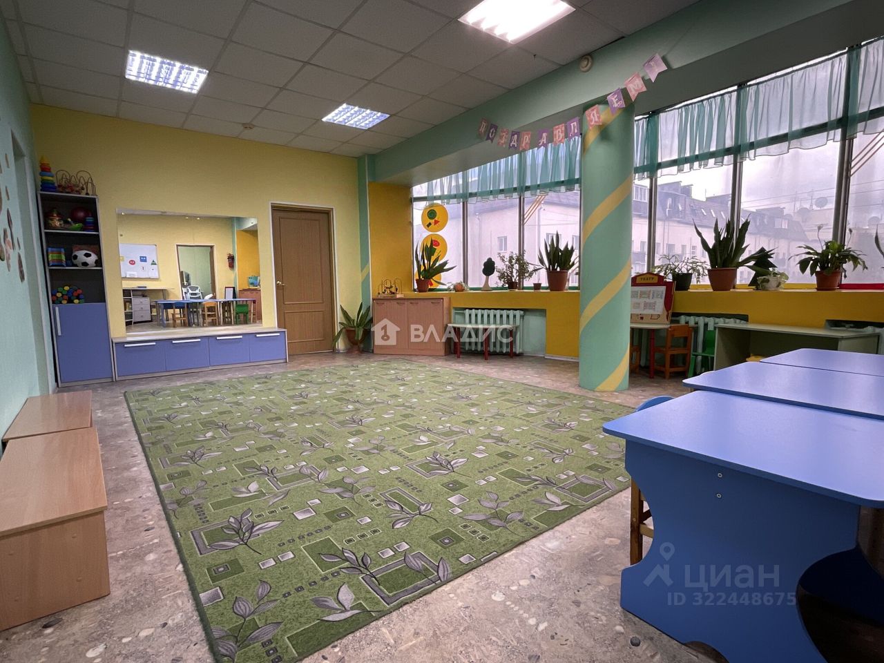 Помещение (детский развивающий центр) общей площадью 109, 7 кв находится на четвёртом этаже многоэтажного офисного центра, состоит из обучающих классов, игрового зала, кабинетов, раздевалки и кухонного помещения. Состояние отличное, мебель, обучающие материалы. Санузел раздельный.