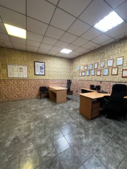 двухэтажное здание - на первом этаже расположена входная группа - приемная, на втором этаже рабочие кабинеты, кухня.