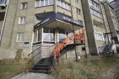 Фасад оформлен в соответствии с назначением , вывеска, входная группа.