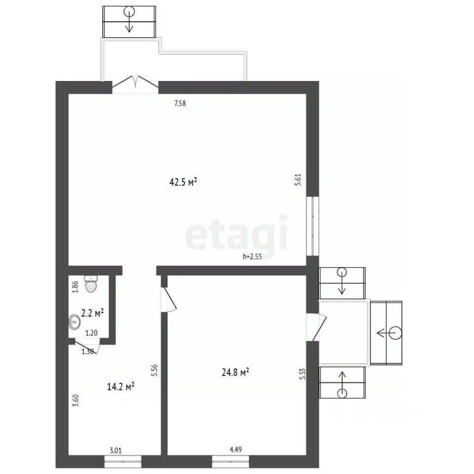 Все помещения с окнами, что делает помещение светлым и уютным, своя мокрая точка.