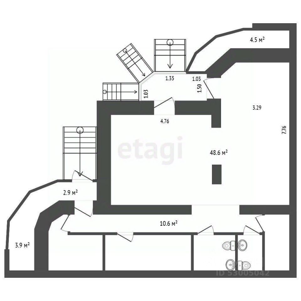 Объект недвижимости - нежилое помещение площадью 94,2 кв.м. Имеет три входа. Два входа рядом друг с другом - помещение можно зонировать и использовать как два отдельных. Третий вход - доступ в складское помещение, кроме того есть помещение туалета, кабинет, склад, прочие помещения. Высота потолков 2,7 видеонаблюдение, охрана, кондиционеры, вытяжка. Хорошая эл. мощность - 20 квт.