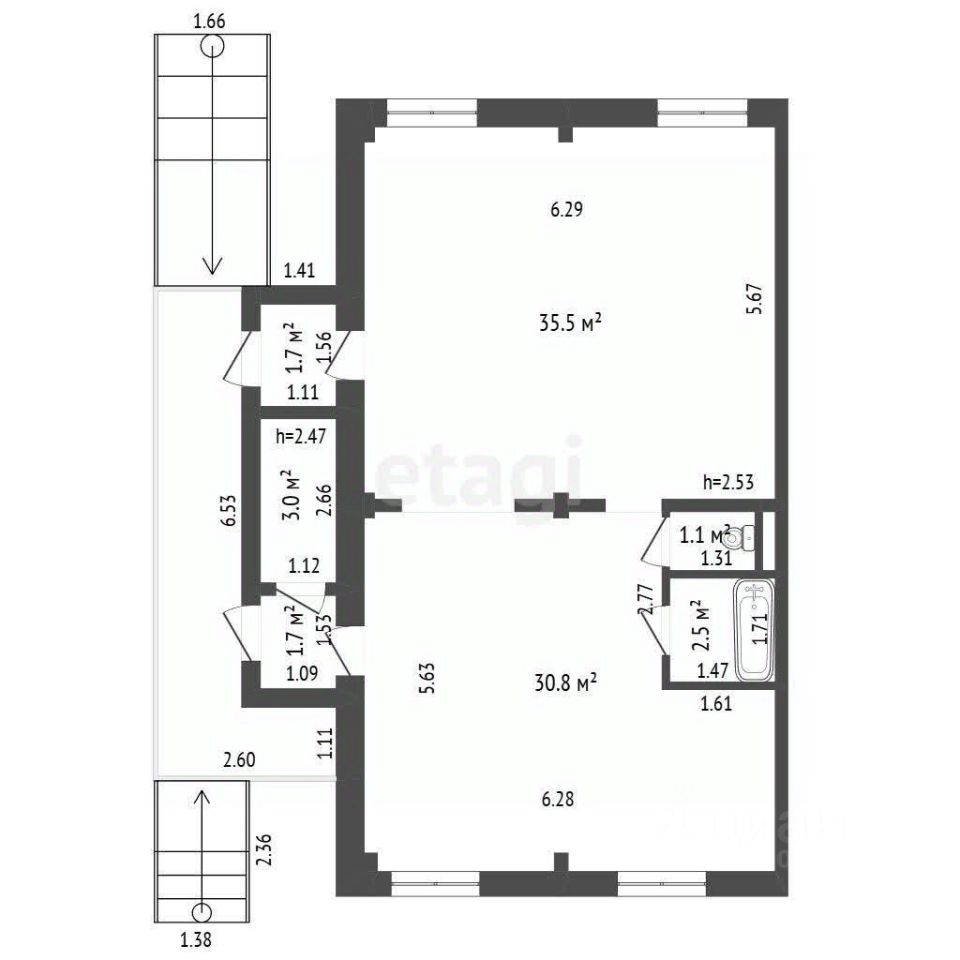 • предусмотрены мокрые точки, есть возможность обустройства двух санузлов