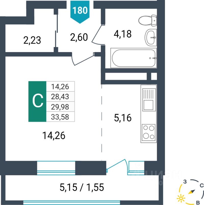Продаётся студия в строящемся доме (Секция 1), срок сдачи: I-кв. 2026, общей площадью 29.98 кв.м., на 4 этаже. Новый жилой комплекс от специализированного застройщика "Мир"