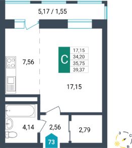 Продаётся студия в строящемся доме (Секция 1), срок сдачи: I-кв. 2026, общей площадью 35.75 кв.м., на 4 этаже. Новый жилой комплекс от специализированного застройщика "Мир"