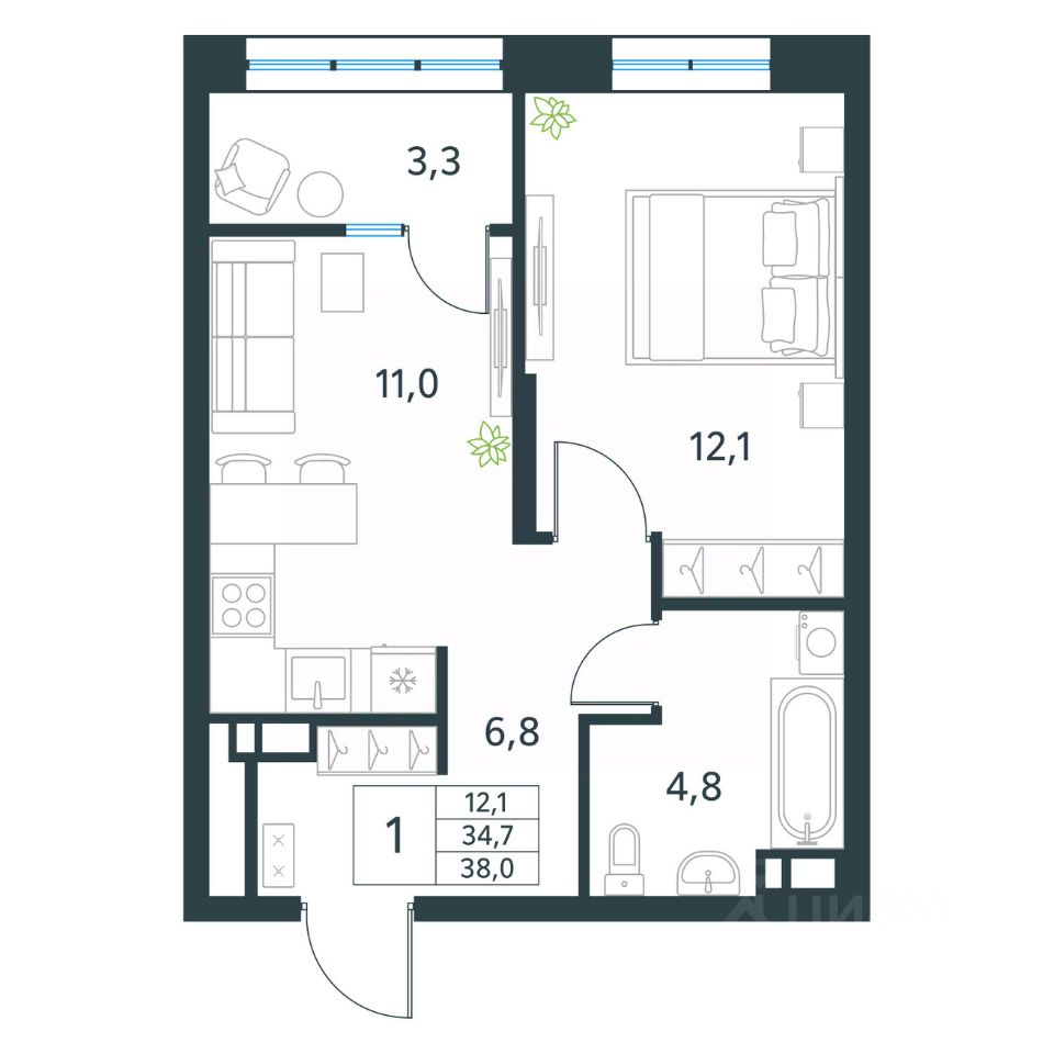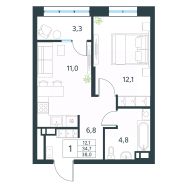 Продается 1-комн. квартира площадью 38 кв.м, с черновой отделкой. Квартира расположена на 12 этаже 18 этажного монолитного дома (Литер 1 (3 очередь), Секция 1) в ЖК "Хороший" от АТОЛЛ.