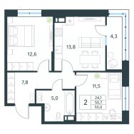 Продается 2-комн. квартира площадью 55 кв.м, без отделки. Квартира расположена на 10 этаже 18 этажного монолитного дома (Литер 1 (3 очередь), Секция 1) в ЖК "Хороший" от АТОЛЛ.
