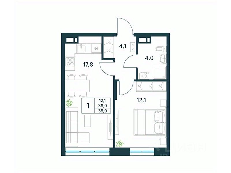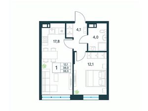 Продается 1-комн. квартира площадью 38 кв.м, без отделки. Квартира расположена на 2 этаже 18 этажного монолитно-кирпичного дома (Литер 2 (3 очередь), Секция 1) в ЖК "Хороший" от АТОЛЛ.