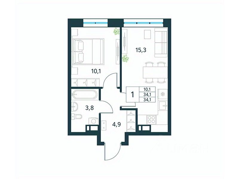 Продается 1-комн. квартира площадью 34,1 кв.м, без отделки. Квартира расположена на 4 этаже 18 этажного монолитно-кирпичного дома (Литер 2 (3 очередь), Секция 1) в ЖК "Хороший" от АТОЛЛ.