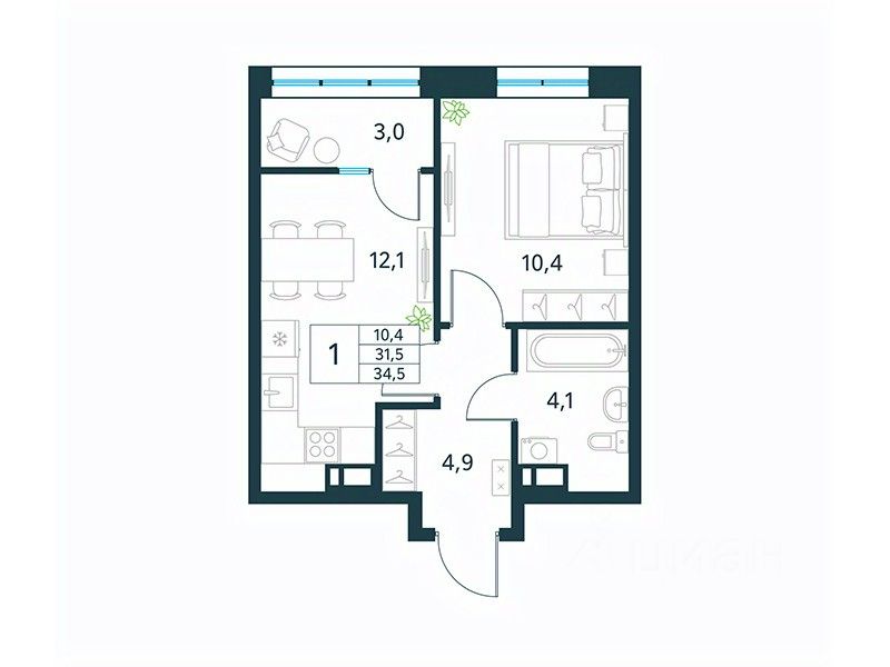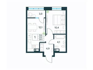 Продается 1-комн. квартира площадью 34,5 кв.м, без отделки. Квартира расположена на 15 этаже 18 этажного монолитного дома (Литер 1 (3 очередь), Секция 1) в ЖК "Хороший" от АТОЛЛ.