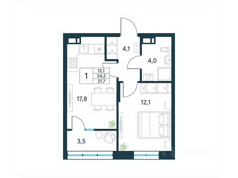 Продается 1-комн. квартира площадью 37,7 кв.м, без отделки. Квартира расположена на 6 этаже 18 этажного монолитно-кирпичного дома (Литер 2 (3 очередь), Секция 1) в ЖК "Хороший" от АТОЛЛ.
