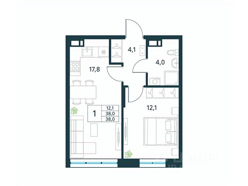 Продается 1-комн. квартира площадью 38 кв.м, без отделки. Квартира расположена на 3 этаже 18 этажного монолитно-кирпичного дома (Литер 2 (3 очередь), Секция 1) в ЖК "Хороший" от АТОЛЛ.