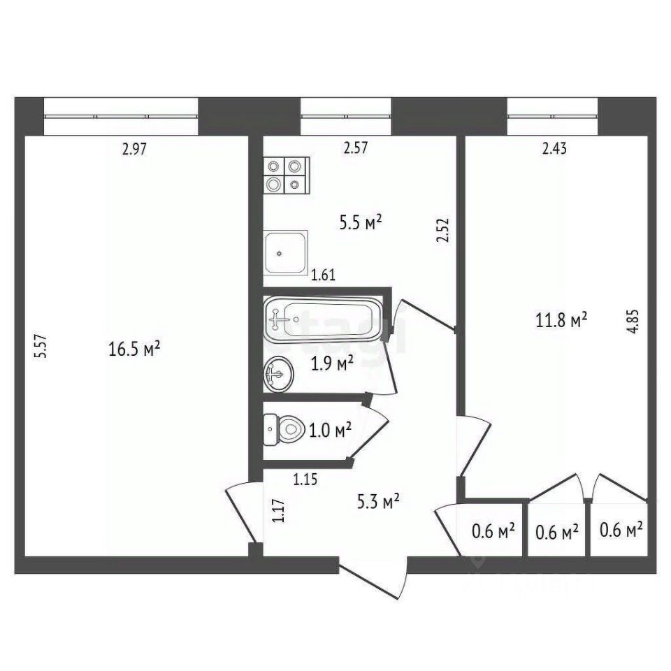 Комнаты: 2 раздельные — удобно для семьи, детей или сдачи
