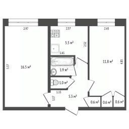 Площадь: 43,8 м²