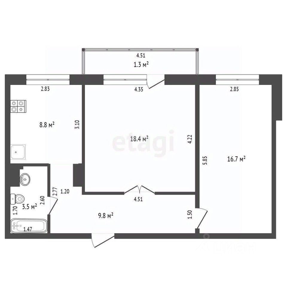 Площадь:58,5 м²