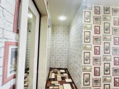 Выполнен косметический ремонт с натяжными потолками, уложен линолеум, установлены пластиковые окна и новые межкомнатные двери. Санузел отделан кафельной плиткой, балкон застеклен.