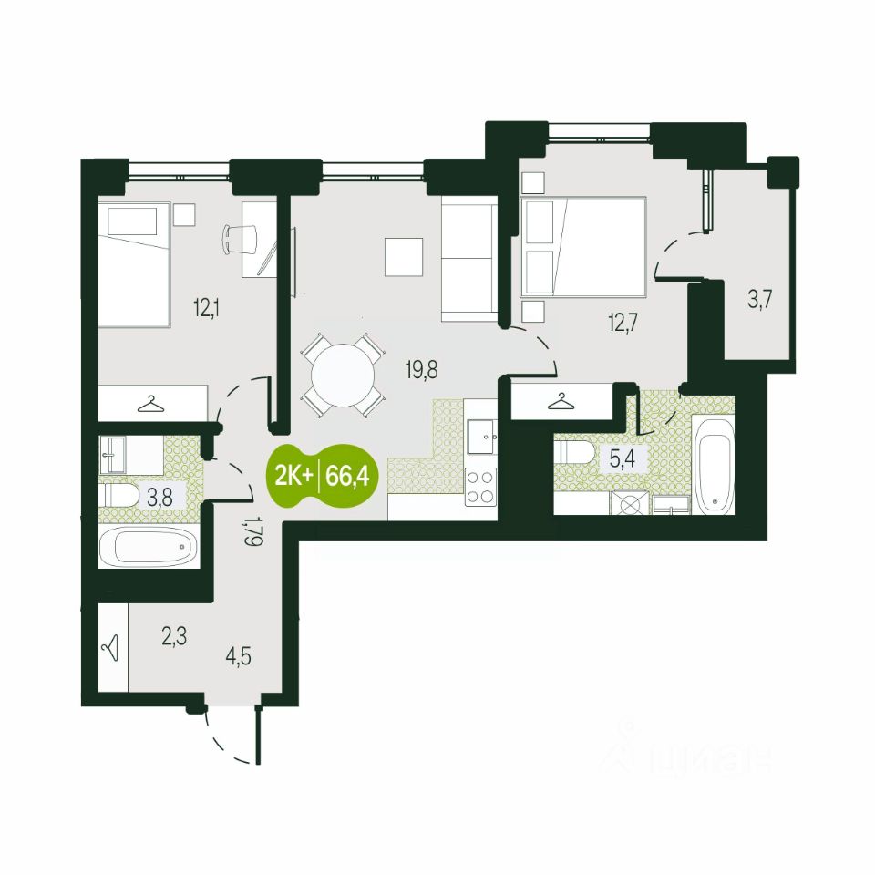 Общая площадь66,46 м²