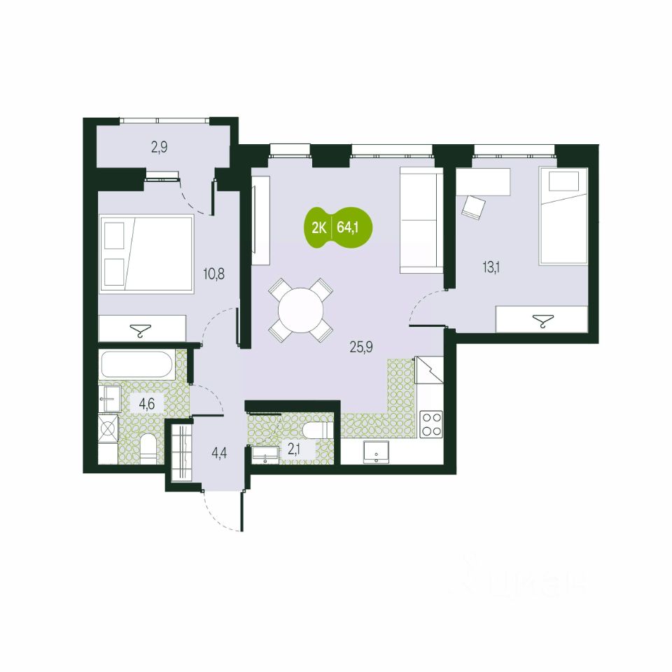 Общая площадь64,1 м²