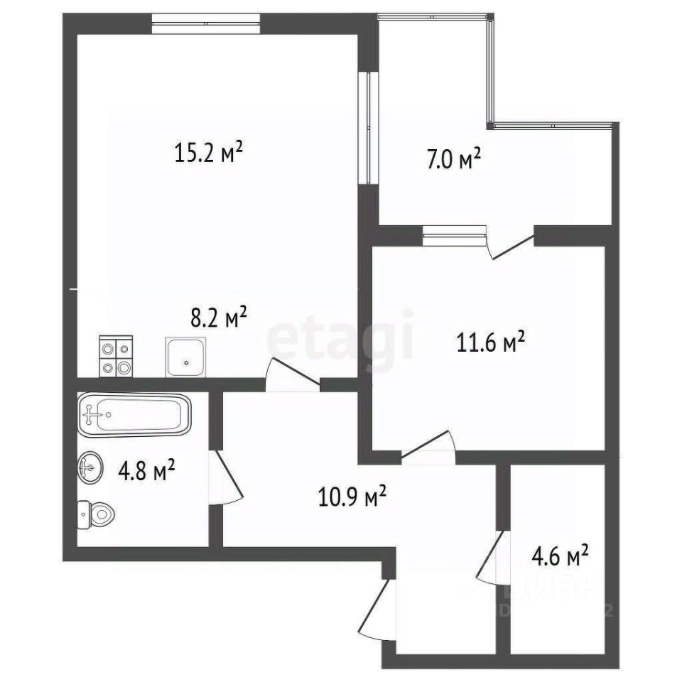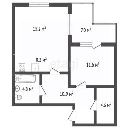 Продается теплая и светлая евро двухкомнатная квартира в самом сердце города, площадь 58,6 м².
