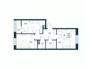 Продается 2-комн. квартира площадью 54,9 кв.м, без отделки. Квартира расположена на 10 этаже 18 этажного монолитного дома (Литер 1 (3 очередь), Секция 1) в ЖК "Хороший" от АТОЛЛ.