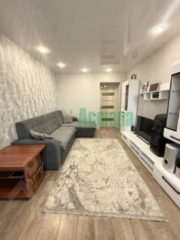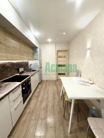 Квартира выполнена в современном минималистичном стиле, что позволяет легко адаптировать интерьер под ваши предпочтения. Окна пластиковые, натяжные потолки, обои на стенах, ламинат на полу и кафель в санузле.
