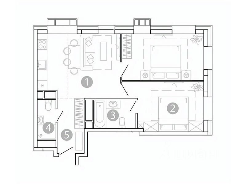 Продается 2-комн. кв-ра площадью 57,77 кв.м на 2 этаже 15 этажного монолитного дома в ЖК "Сенсация" от АО ГК ОСНОВА. Старт продаж нового квартала в Чите от московского застройщика ГК "Основа".