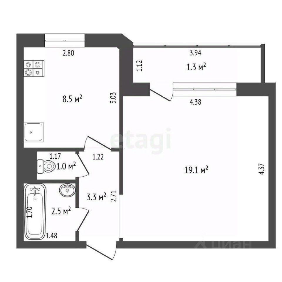 Кухня 8,5 кв.м. Санузел раздельный, в кафеле. Пластиковые окна, на полу — линолеум. Вся мебель остается.