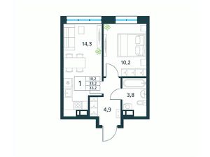 Продается 1-комн. квартира площадью 33,2 кв.м, без отделки. Квартира расположена на 3 этаже 18 этажного монолитно-кирпичного дома (Литер 2 (3 очередь), Секция 1) в ЖК "Хороший" от АТОЛЛ.